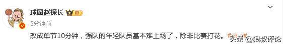 媒体人赵探长发文点评:改成单节10分钟,强队的年轻队员基本难上场了,除非比赛打花。
