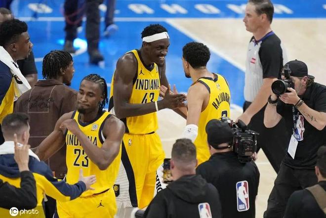 还比如哈利伯顿身边的队友,从西亚卡姆、内史密斯、内姆哈德、特纳,再到替补席上的托平、麦克康奈尔、马瑟林等人,他们每个人单拿出来,也许都不是什么联盟中真正自带流量的大人物,但过去一个赛季,特别是到了季后赛,他们却轮番奉上了自己的闪光时刻,几乎每个人都曾在球队深处困境的时候战力迸发过。还有老帅卡莱尔,他用充足的耐心一点点陪着这帮球员成长,并在过程中不断调试纠错。2023-24赛季,步行者一度复刻了太阳队当年“7秒或更少”的理论,成为联盟最疯的进攻大队。但去年,在意识到单维度的狂攻已经碰到天花板后,卡帅又转而在印城的战术体系中加入了更多变奏的因子,加入了一定的防守权重……而今年季后赛,卡帅过人的预判,他的沉稳和老辣又给与之对垒的所有教练员狠狠的上了一堂临场战术指挥课……假如,步行者能在如此优质的基本盘上,再加入一名有分量的球星,假如步行者这帮球员和教练能更加长久的在一起磨合,或许未来还会有更多惊喜在等着他们……但很遗憾,在残酷的商业法则面前,步行者的黑马故事终究还是如流星一般匆匆划过夜空,又迅速消失在无尽黑暗之中了……赛季结束后,哈利伯顿接受了手术,修复他断裂的跟腱,随之而来的将是为期一年的漫长康复期。