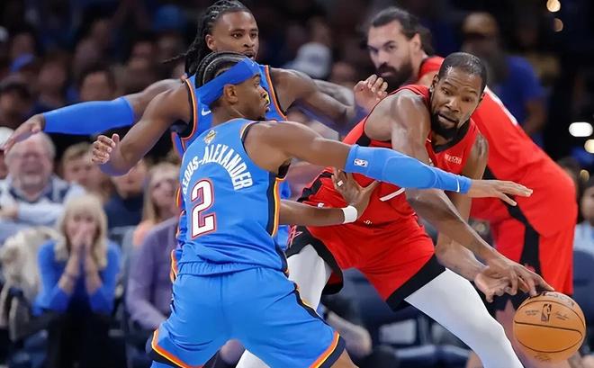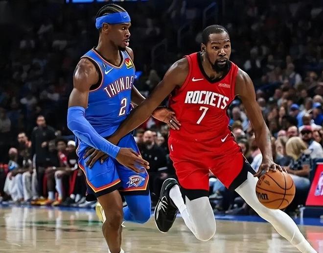 NBA常规赛揭幕战,卫冕冠军雷霆队在主场迎战休斯顿火箭队。这是上赛季西部第1和西部第2的较量,也是本赛季西部巅峰对决的预演,更是杜兰特和SGA两代俄城之王的正面对决。这场比赛,两队战至双加时,火箭队在领先12分的情况下痛失好局,惨遭逆转,雷霆队以125-124险胜火箭队。据统计,这是NBA历史上第6次双加时揭幕战,上一次还要追溯到2005年。