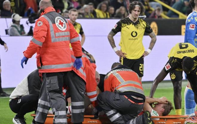 北京时间10月26日,德甲第8轮,多特蒙德1-0科隆。在比赛中,科隆球员许伯斯在与多特球员吉拉西的对抗后痛苦倒地,紧抓右膝。29岁的他最终在队友和医护的陪同下,泪流满面地被担架抬出球场。